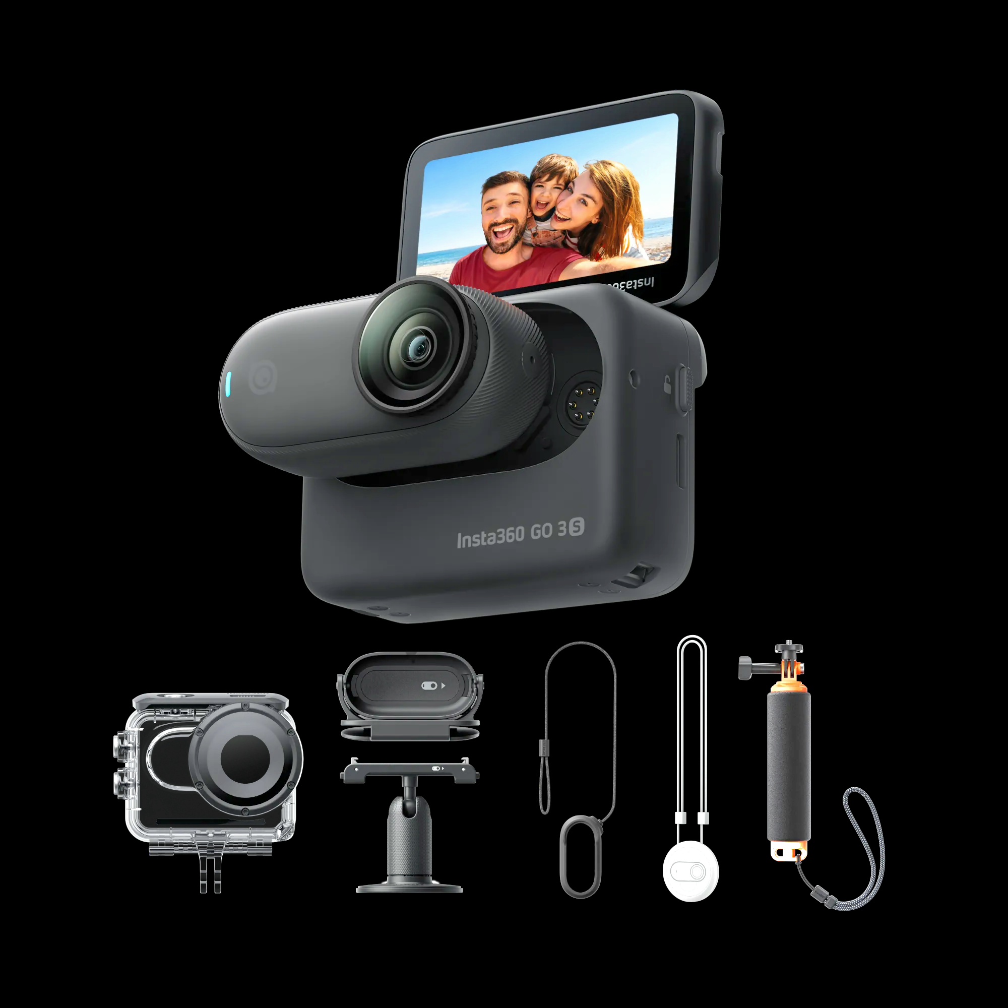 Water Sports Bundle includes 1x GO 3S (64GB), 1x Lens Guard (pre-installed on the lens by default), 1x Action Pod, 1x Magnet Pendant, 1x Pivot Stand, 1x Easy Clip, 1x Dive Case, 1x Floating Hand Grip and 1x Magnet Pendant Safety Cord.