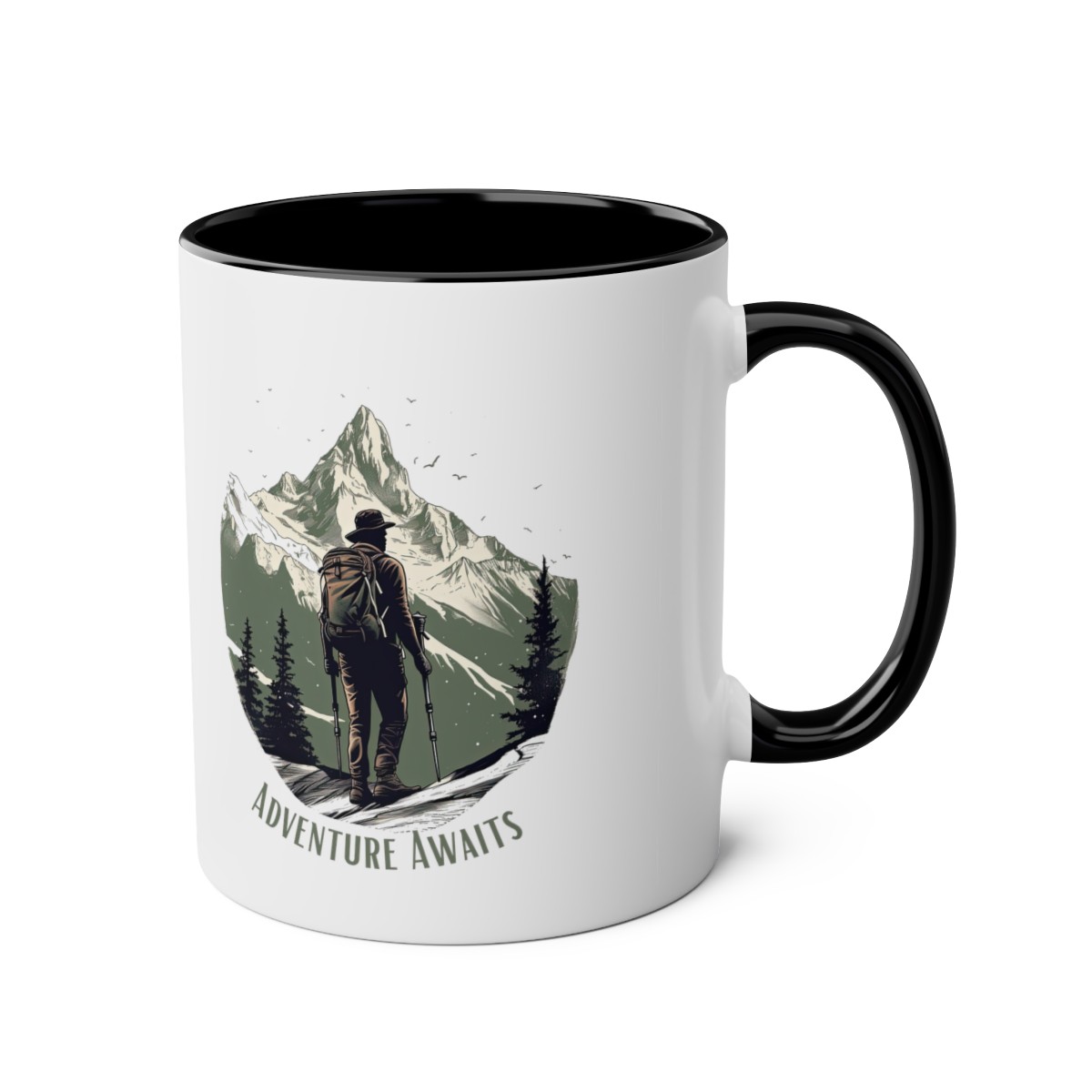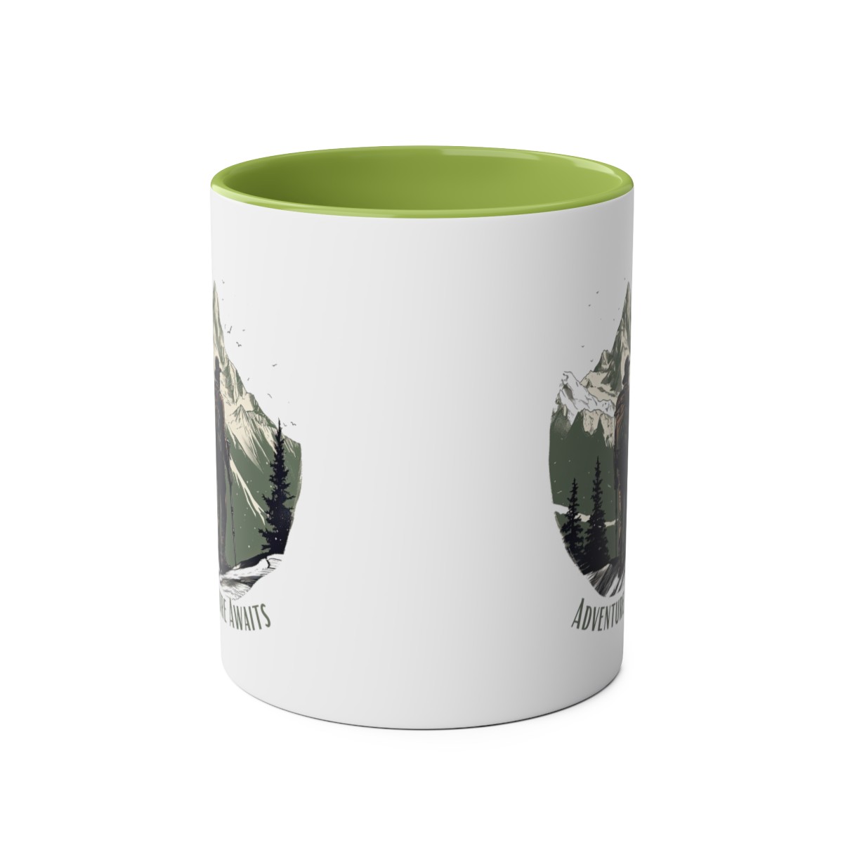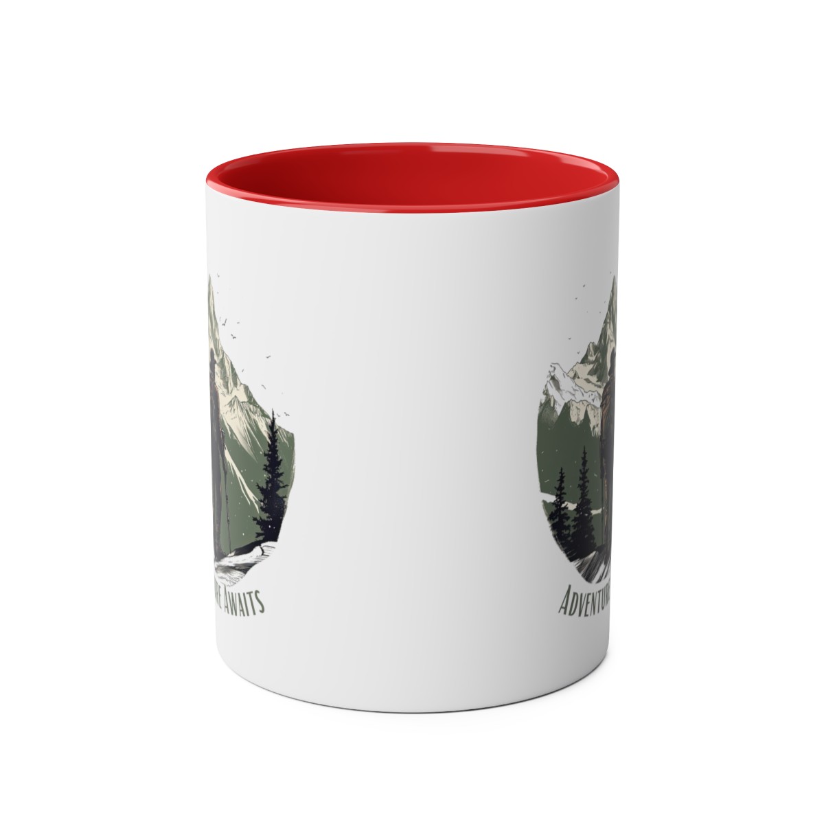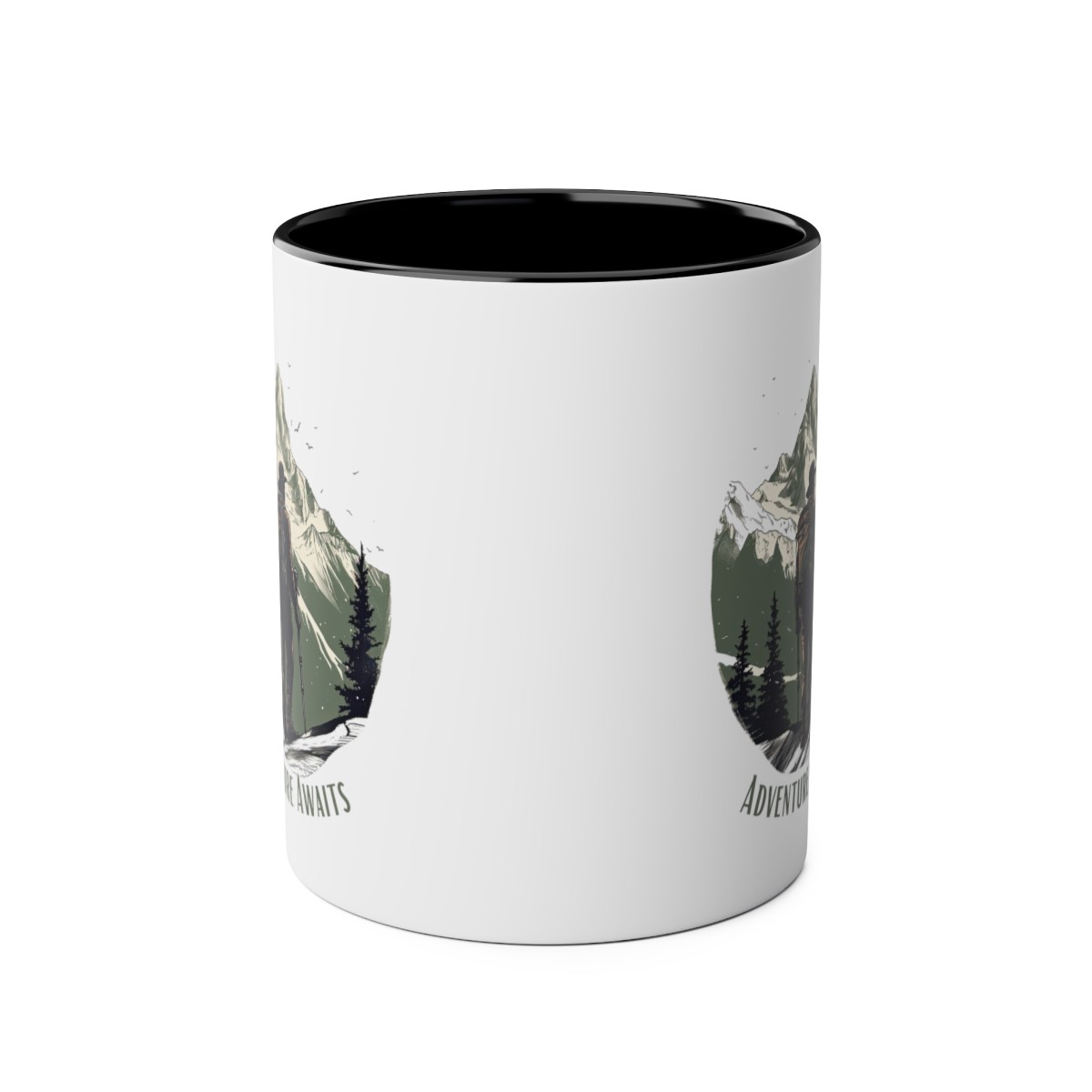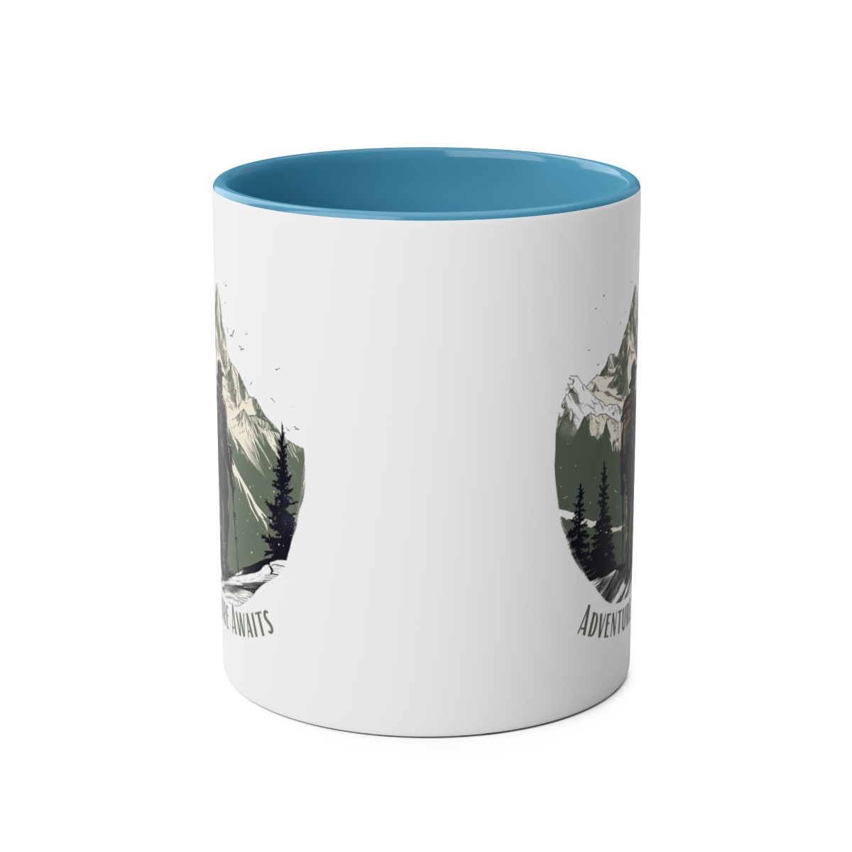 Adventure Awaits – Hiking Mug, Custom Camping Gift | Papa Bear Explores | Two-Tone Coffee Mugs, 11oz