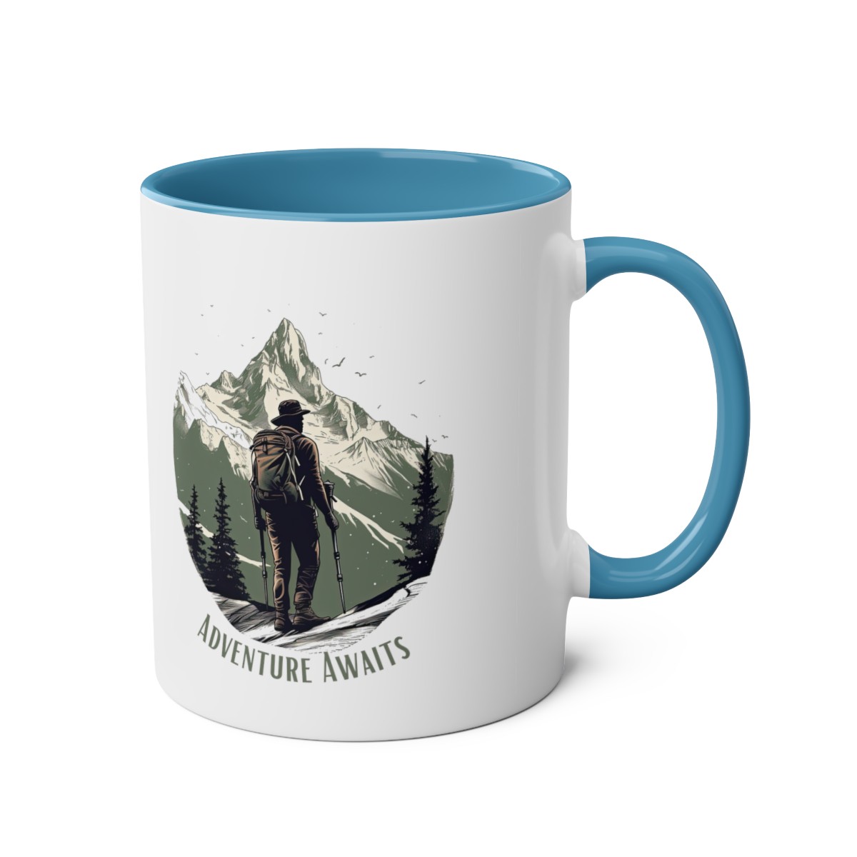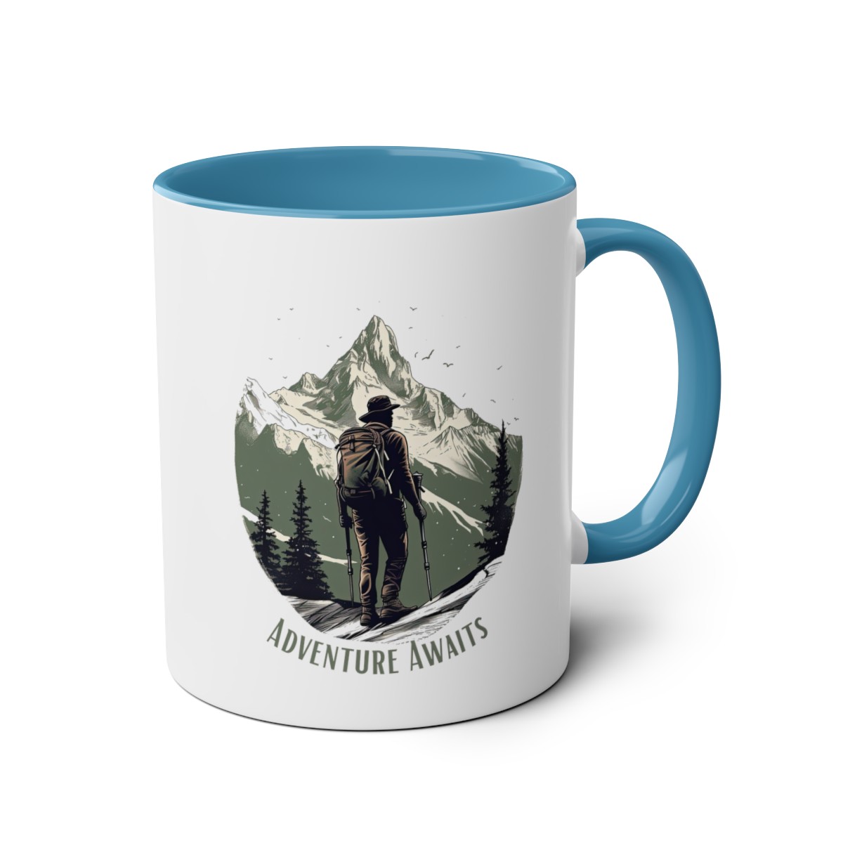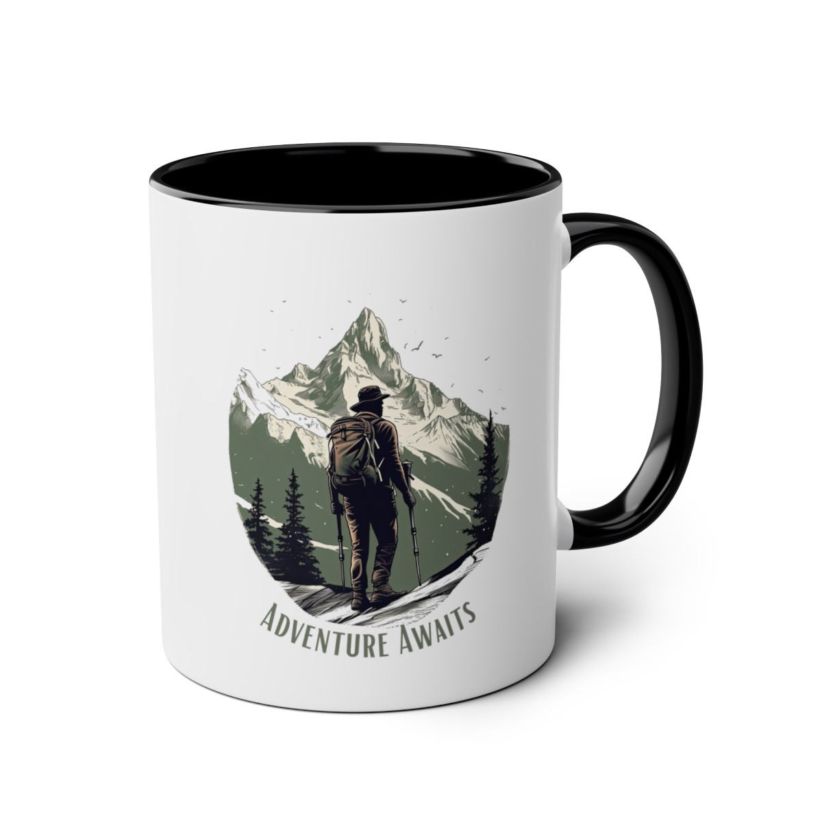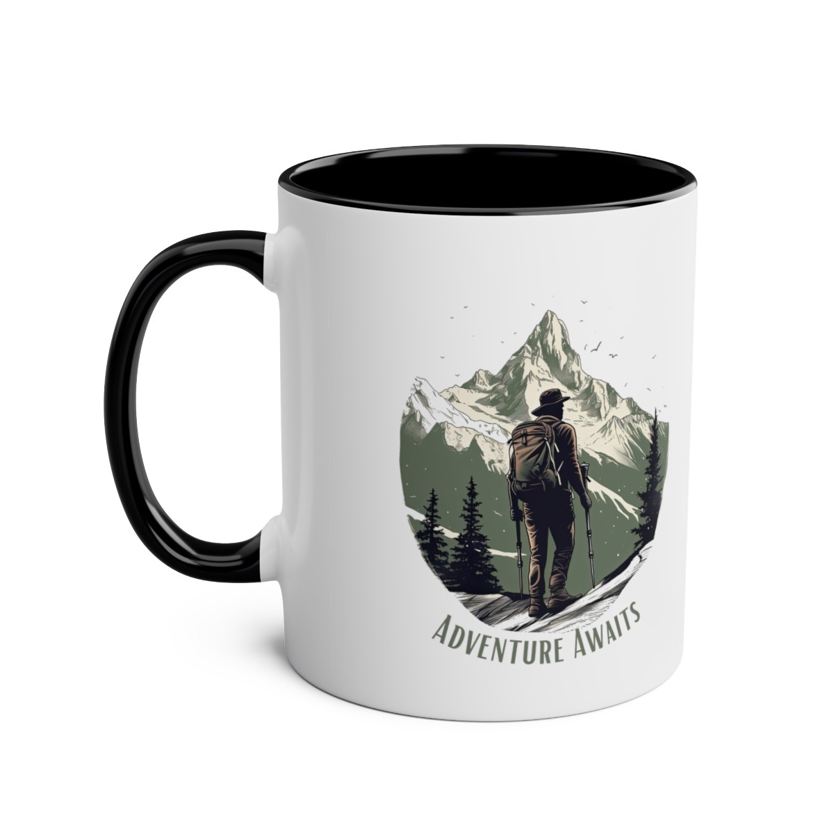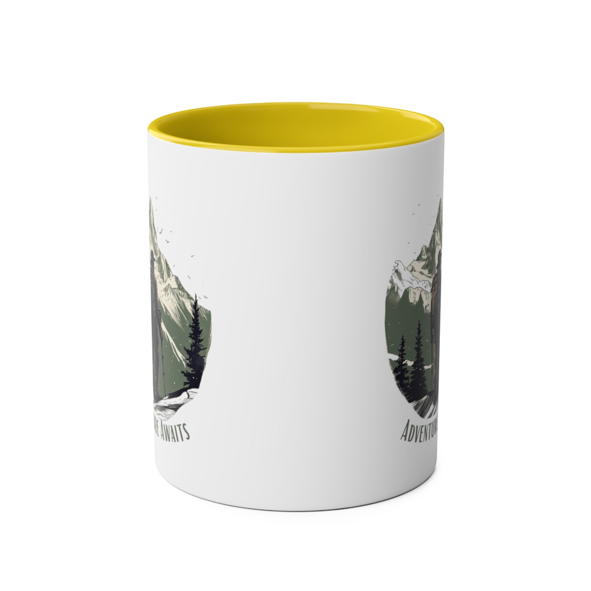 Adventure Awaits – Hiking Mug, Custom Camping Gift | Papa Bear Explores | Two-Tone Coffee Mugs, 11oz