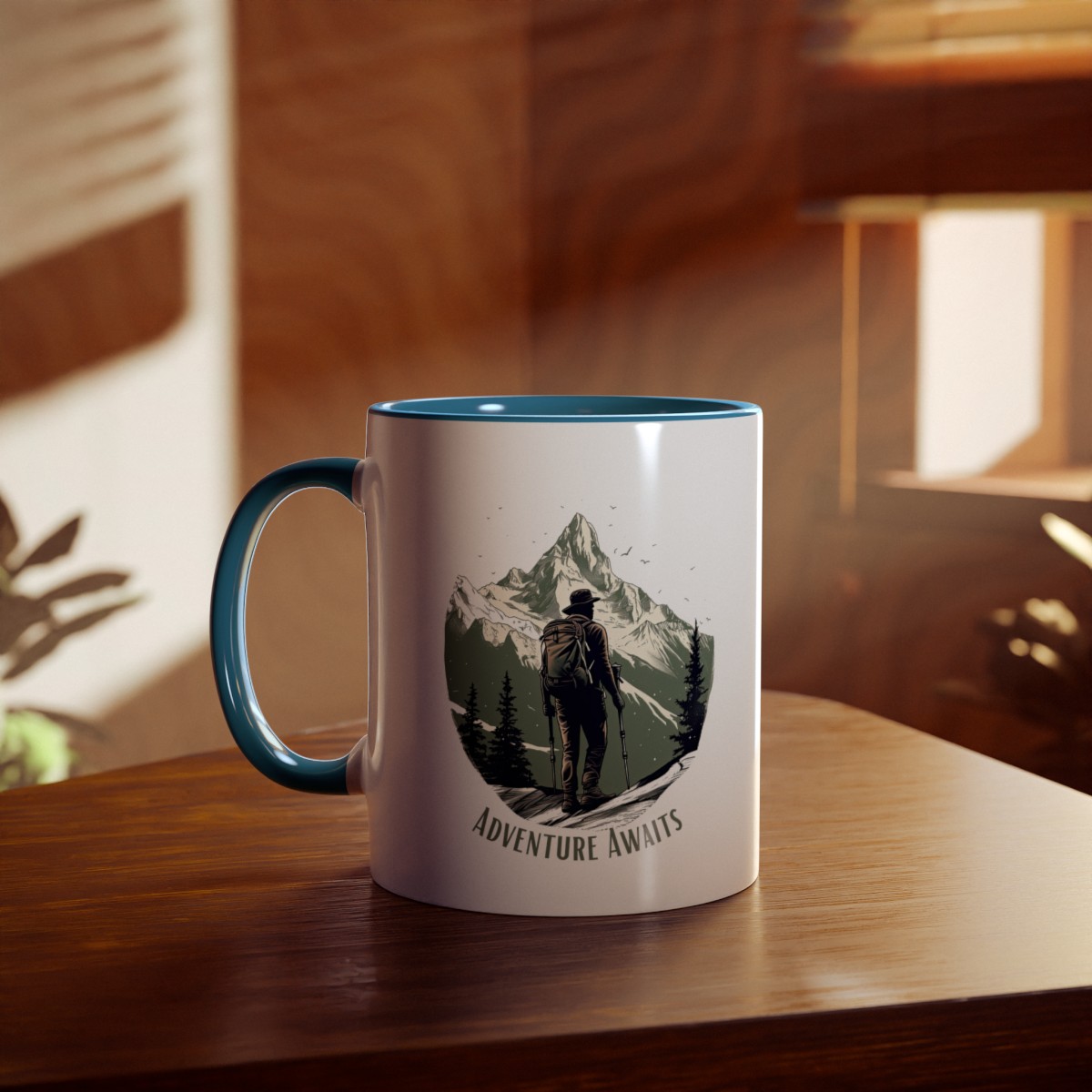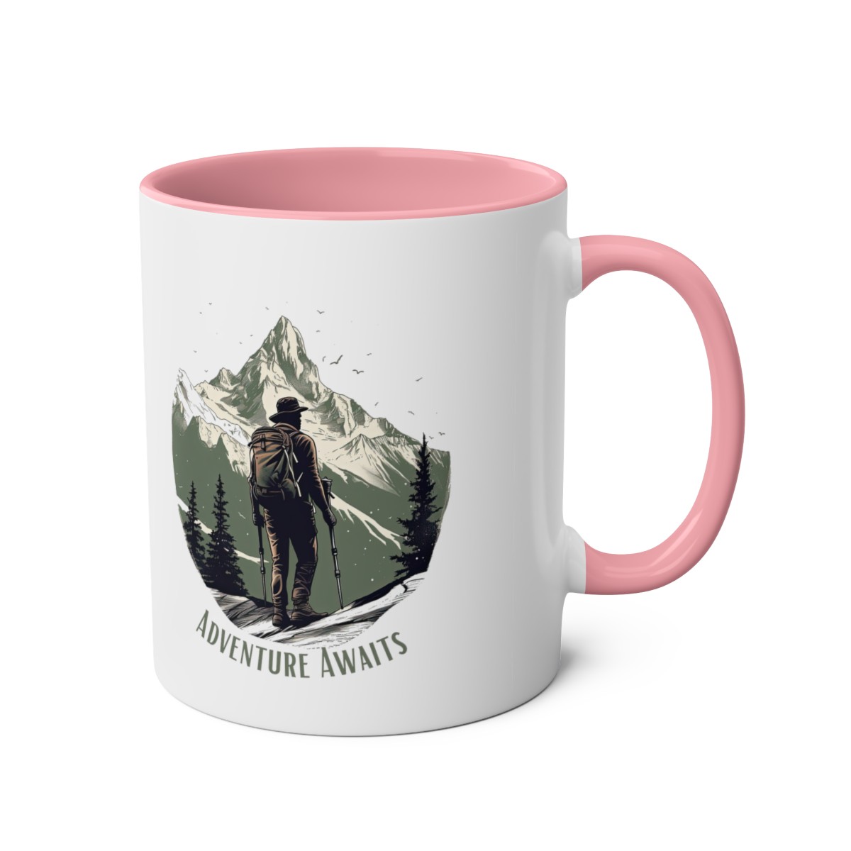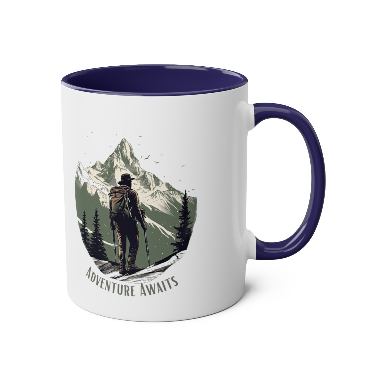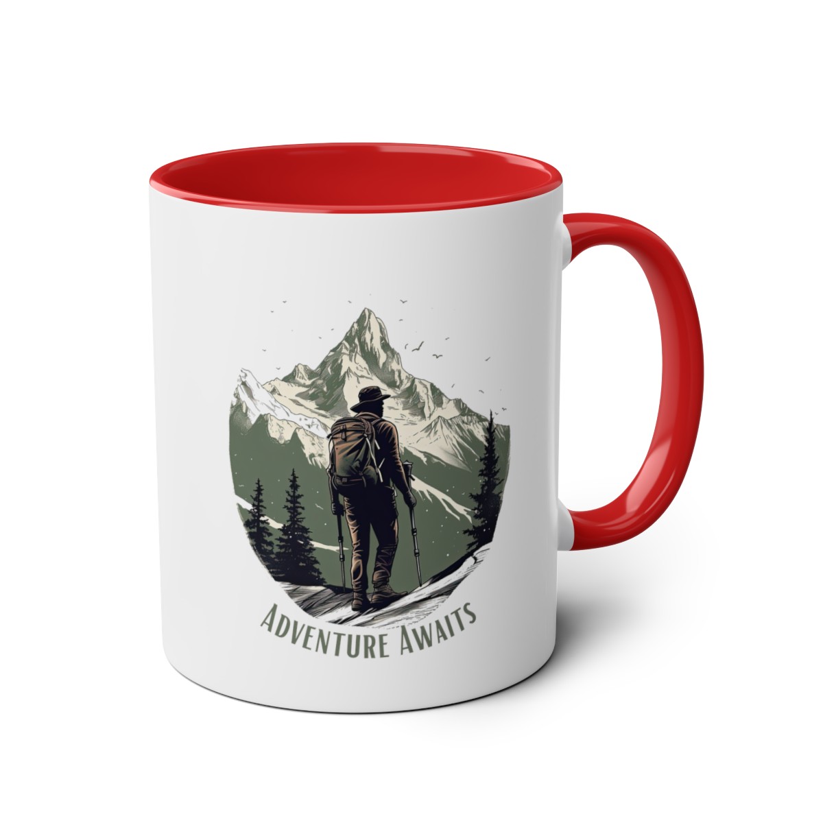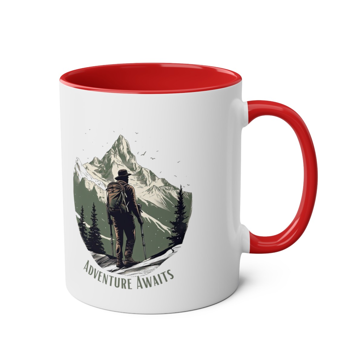 Adventure Awaits – Hiking Mug, Custom Camping Gift | Papa Bear Explores | Two-Tone Coffee Mugs, 11oz