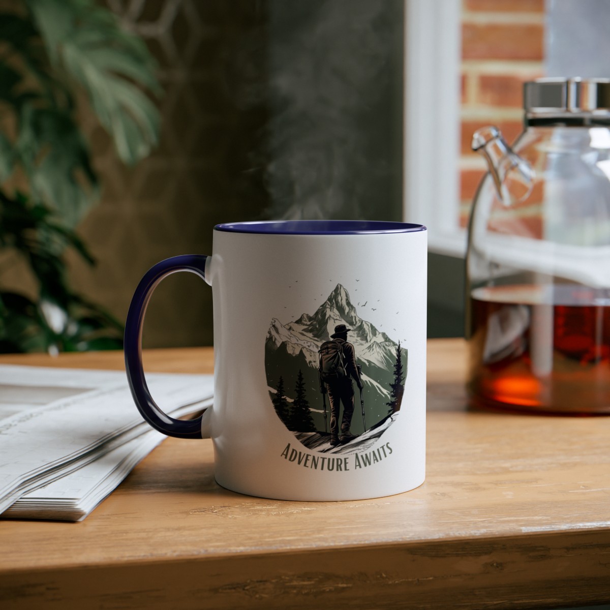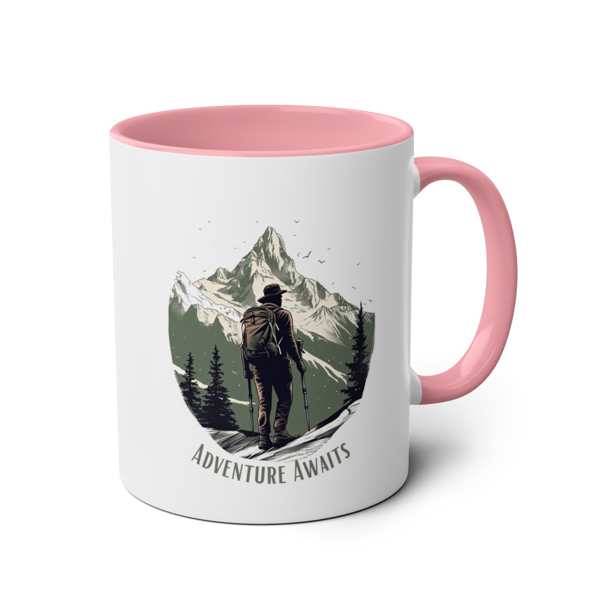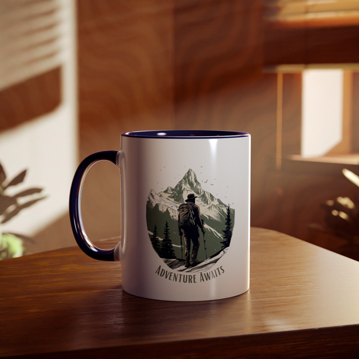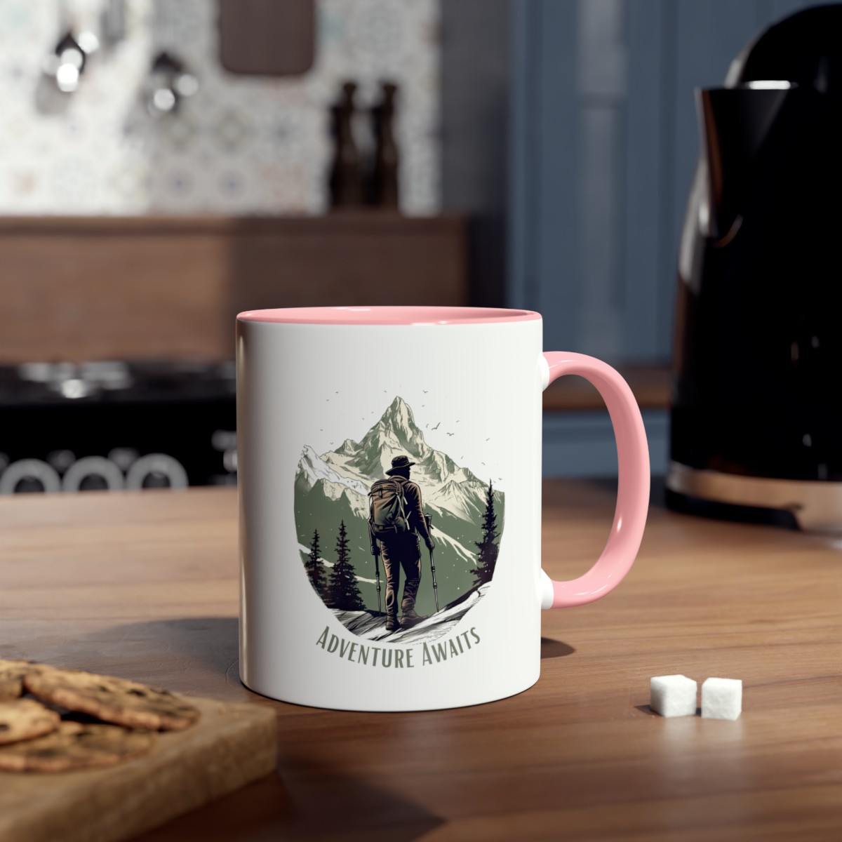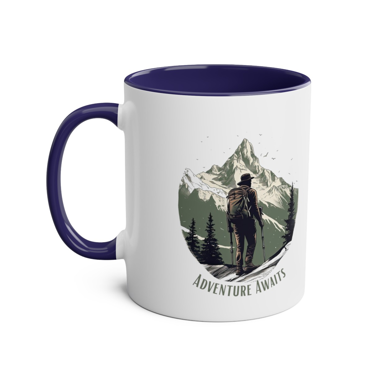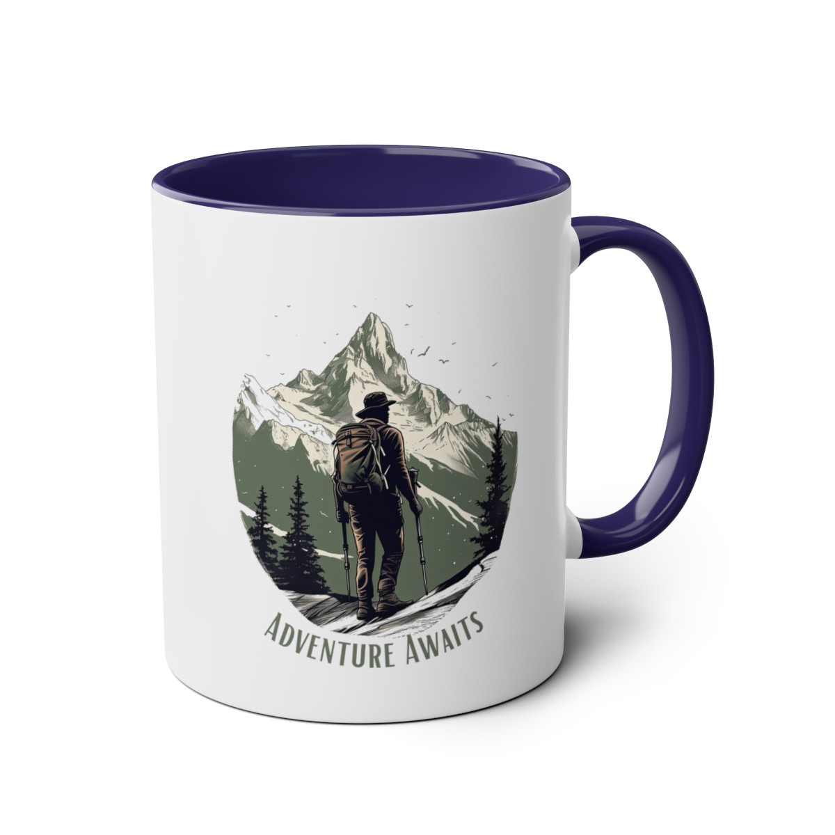 Adventure Awaits – Hiking Mug, Custom Camping Gift | Papa Bear Explores | Two-Tone Coffee Mugs, 11oz