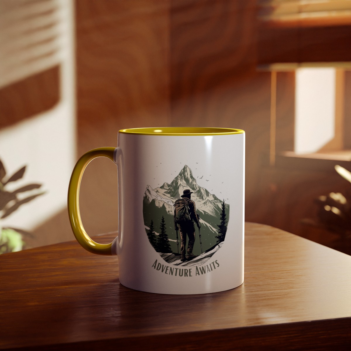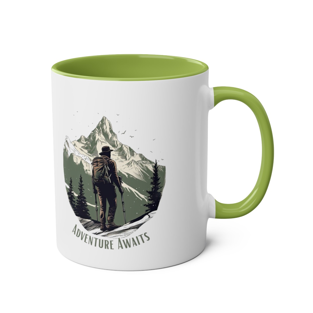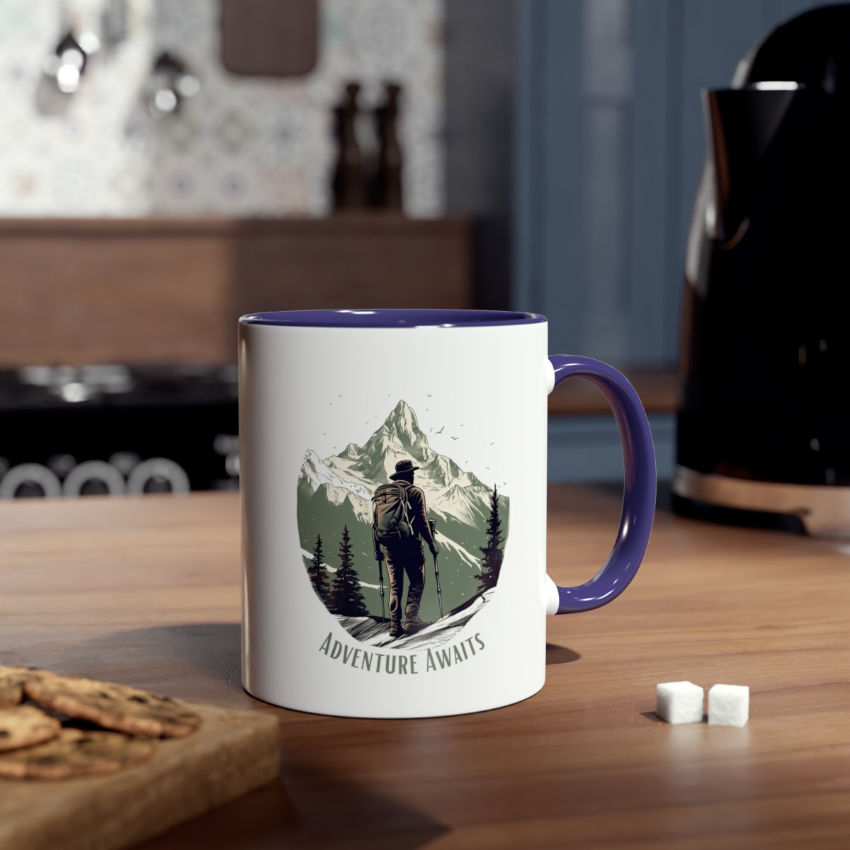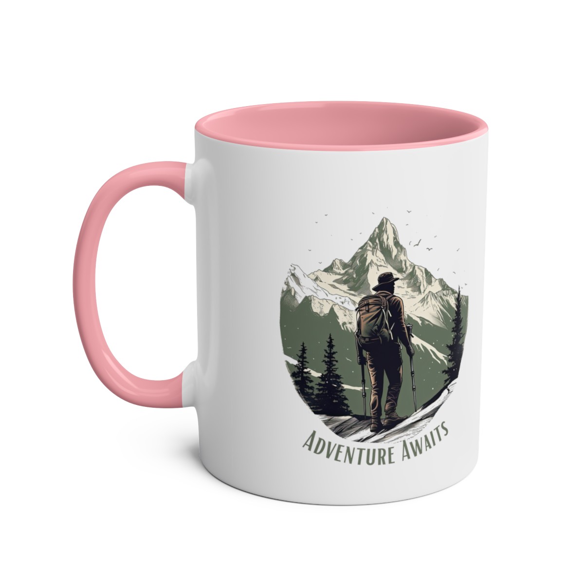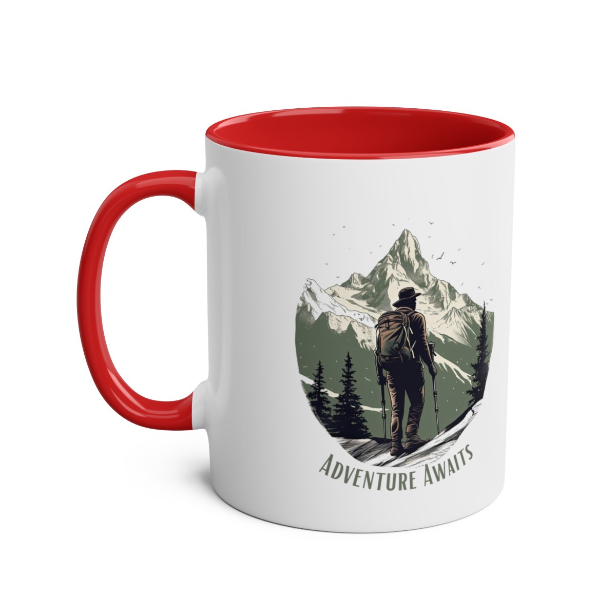 Adventure Awaits – Hiking Mug, Custom Camping Gift | Papa Bear Explores | Two-Tone Coffee Mugs, 11oz