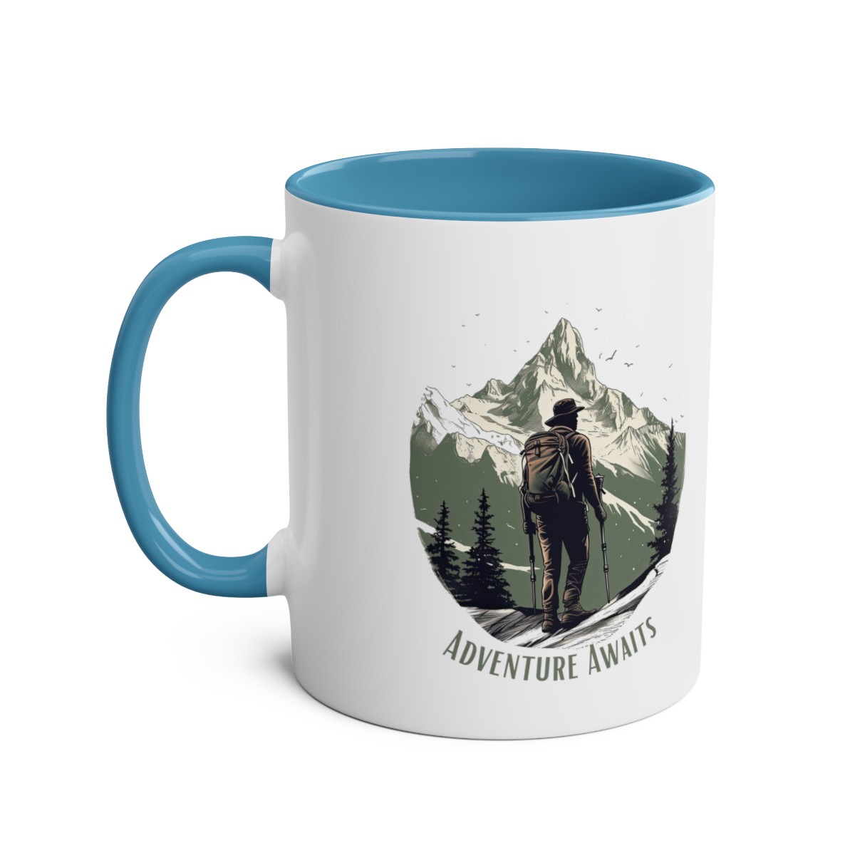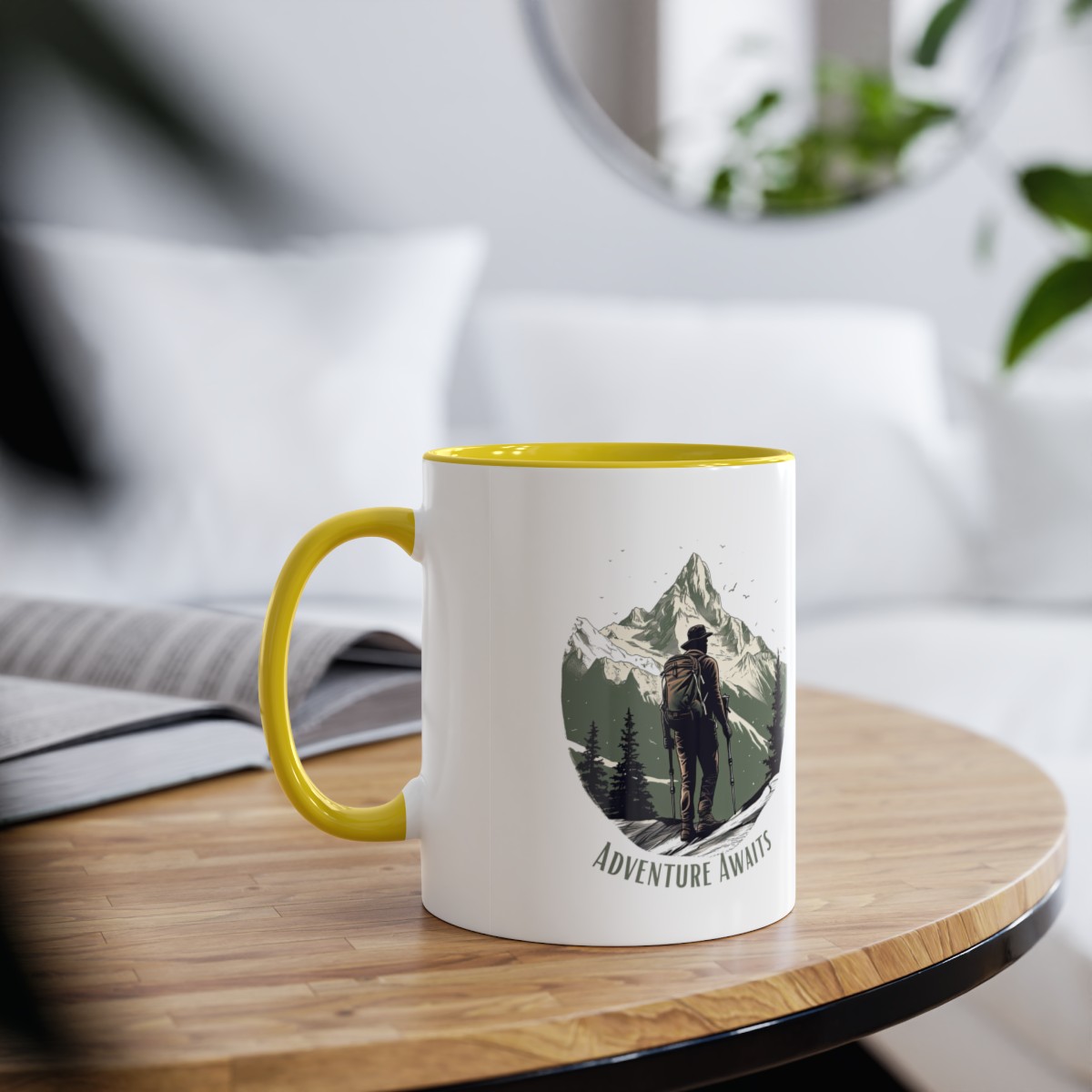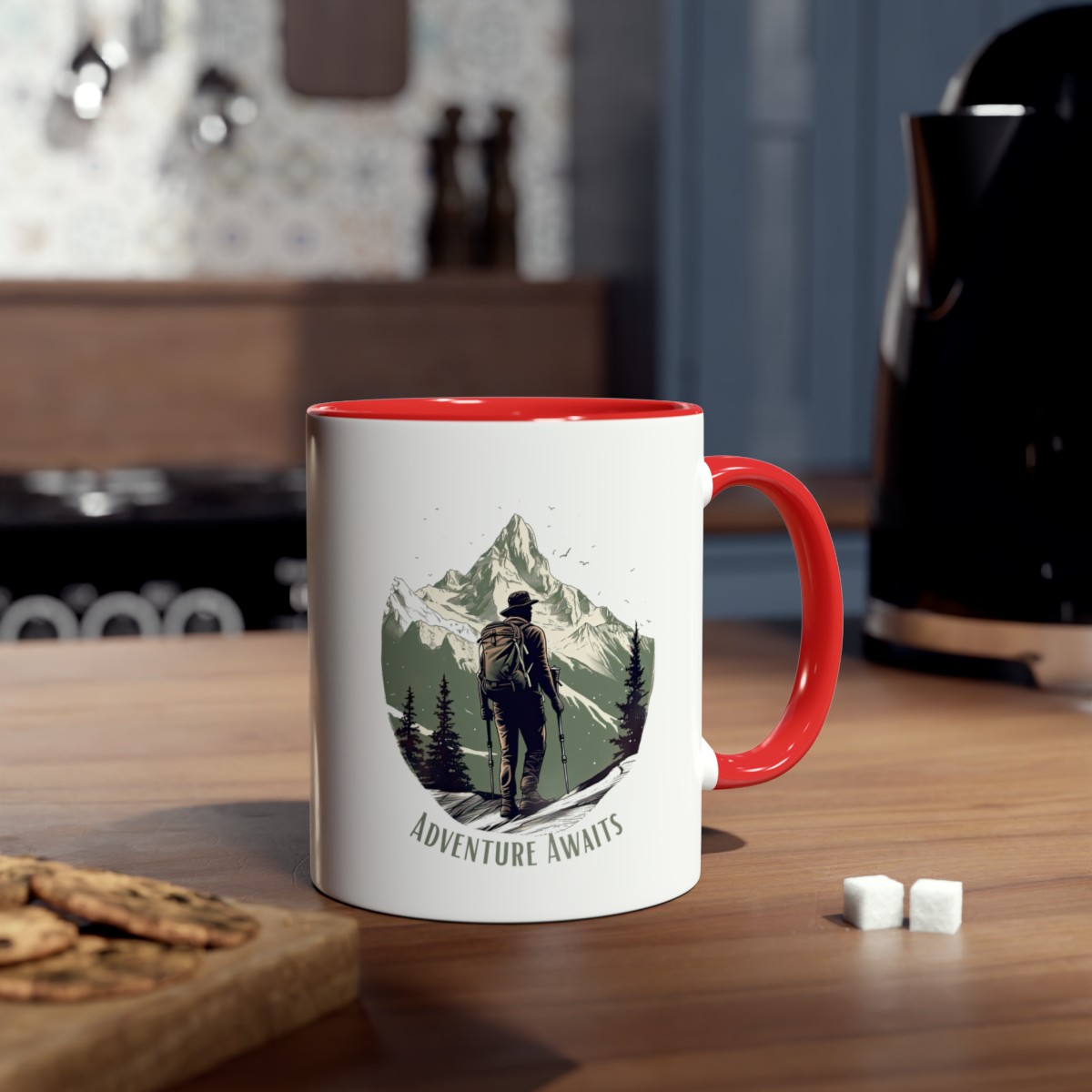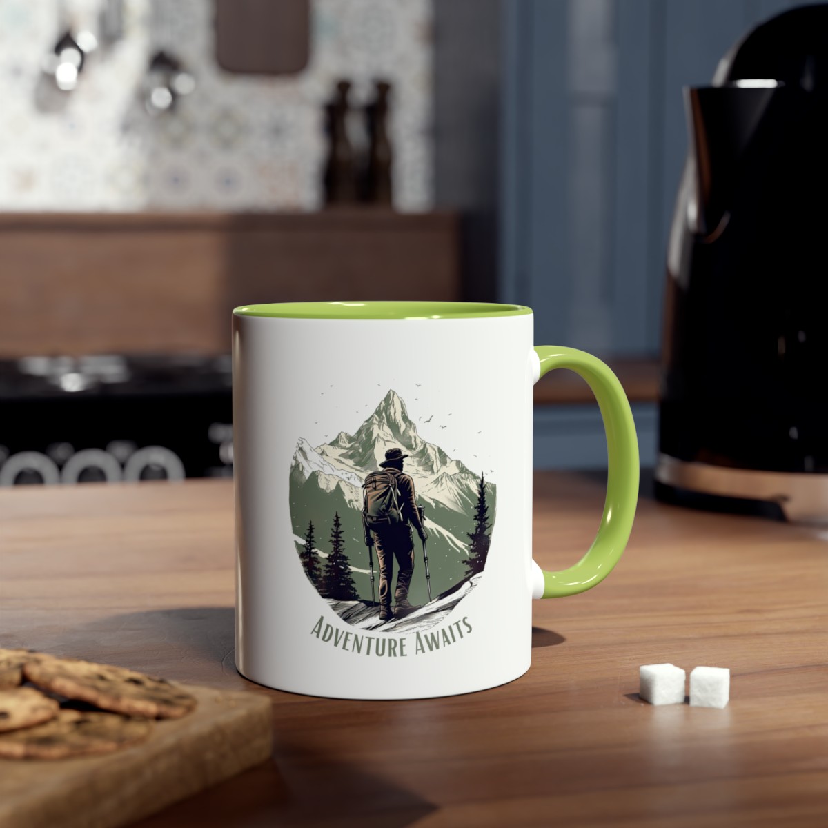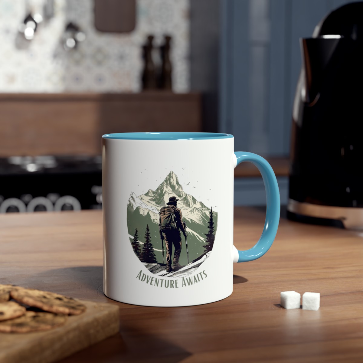 Adventure Awaits – Hiking Mug, Custom Camping Gift | Papa Bear Explores | Two-Tone Coffee Mugs, 11oz