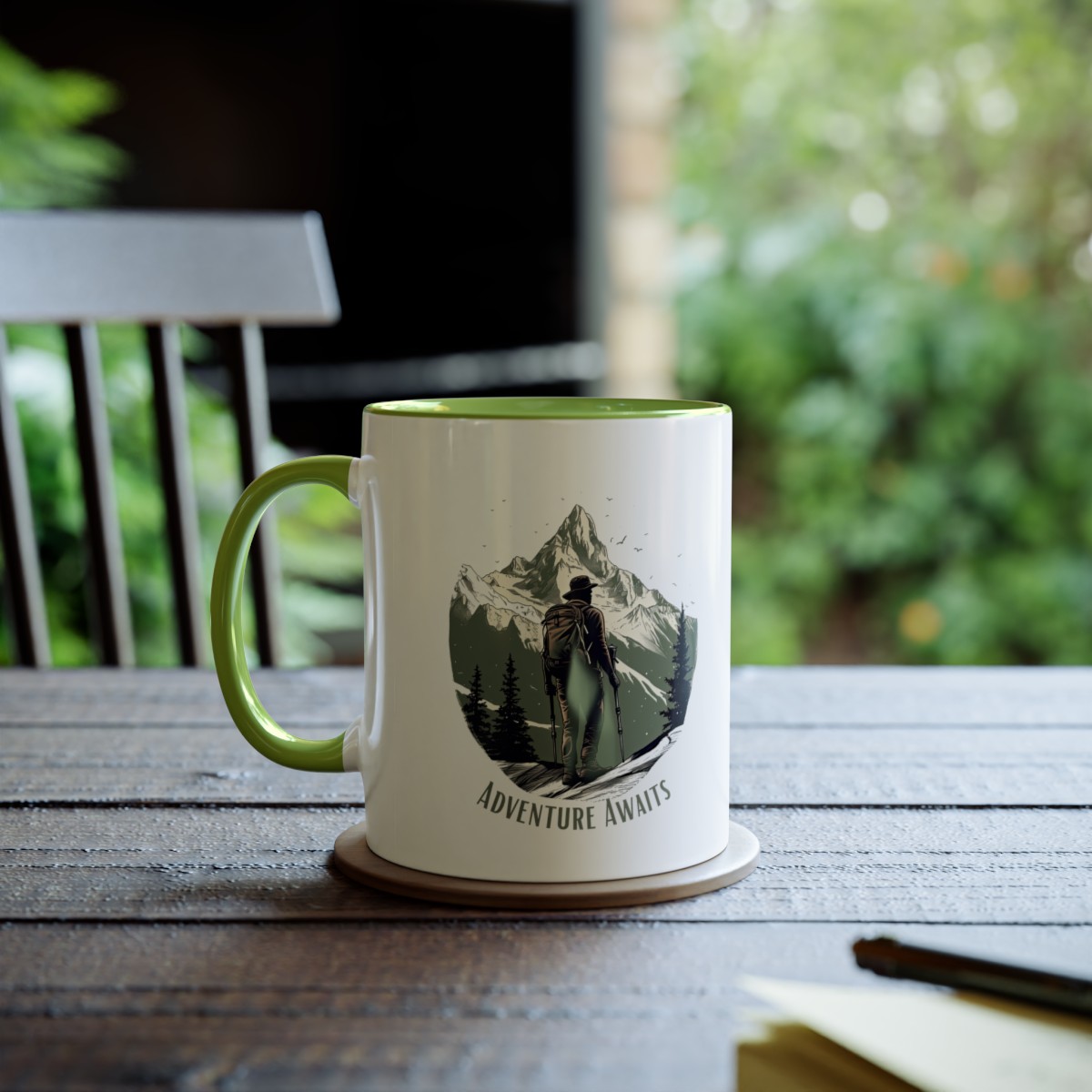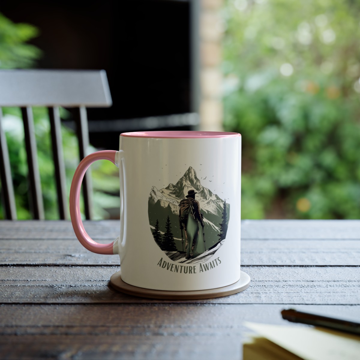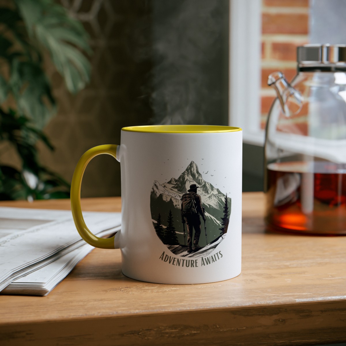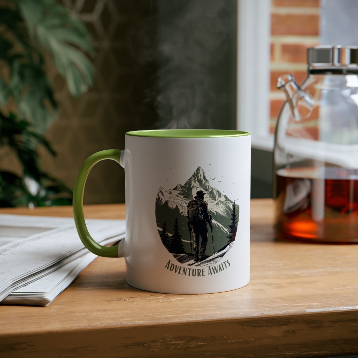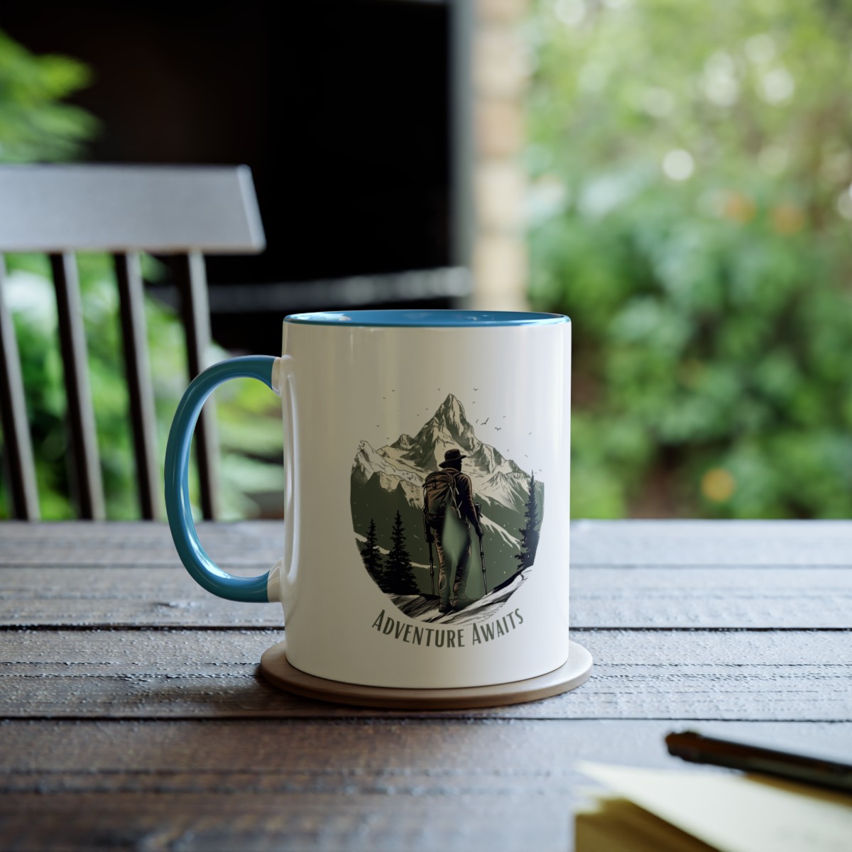 Adventure Awaits – Hiking Mug, Custom Camping Gift | Papa Bear Explores | Two-Tone Coffee Mugs, 11oz