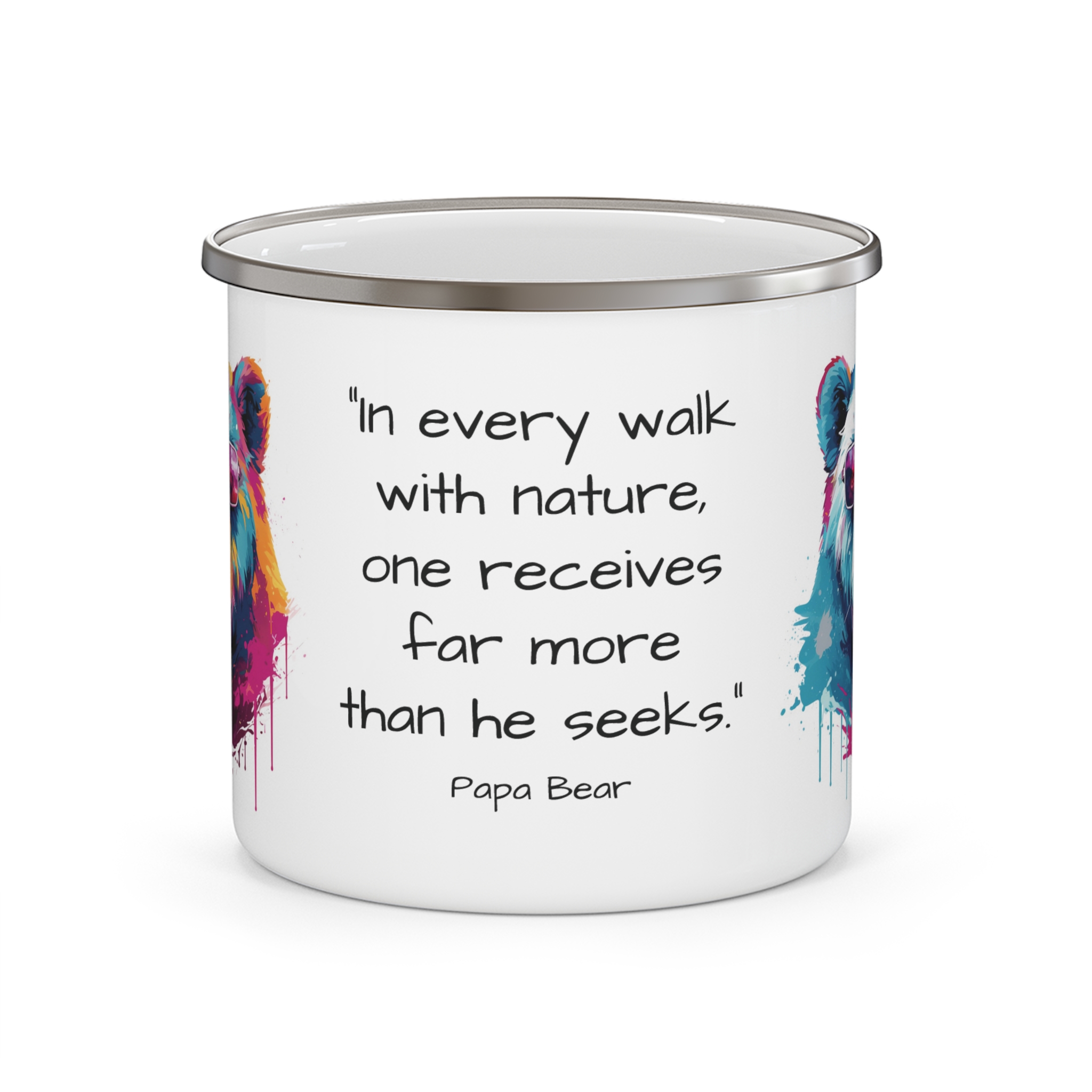 Papa Bear Colorful Quote Enamel Camping Mug – Perfect for Nature & Adventure Lovers
