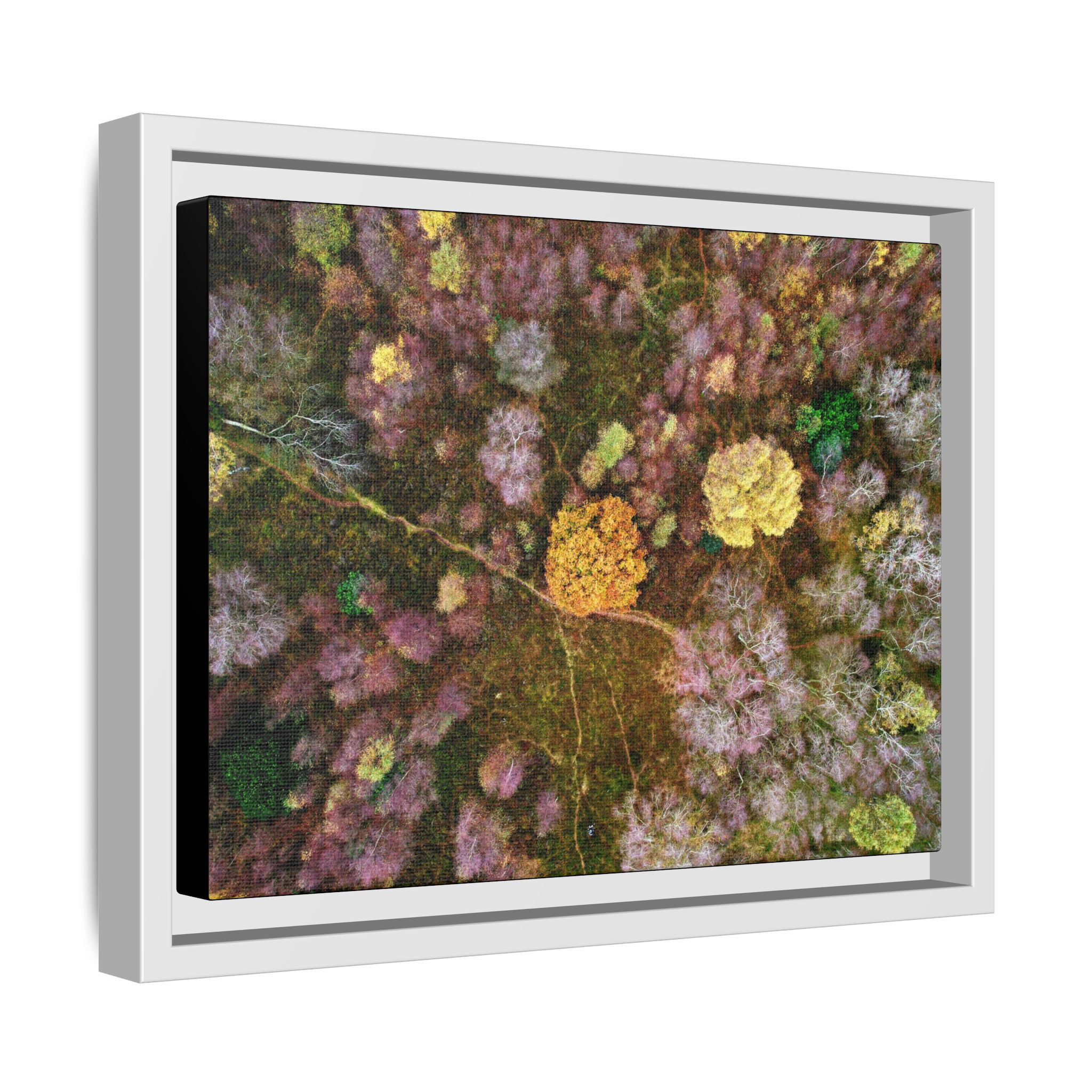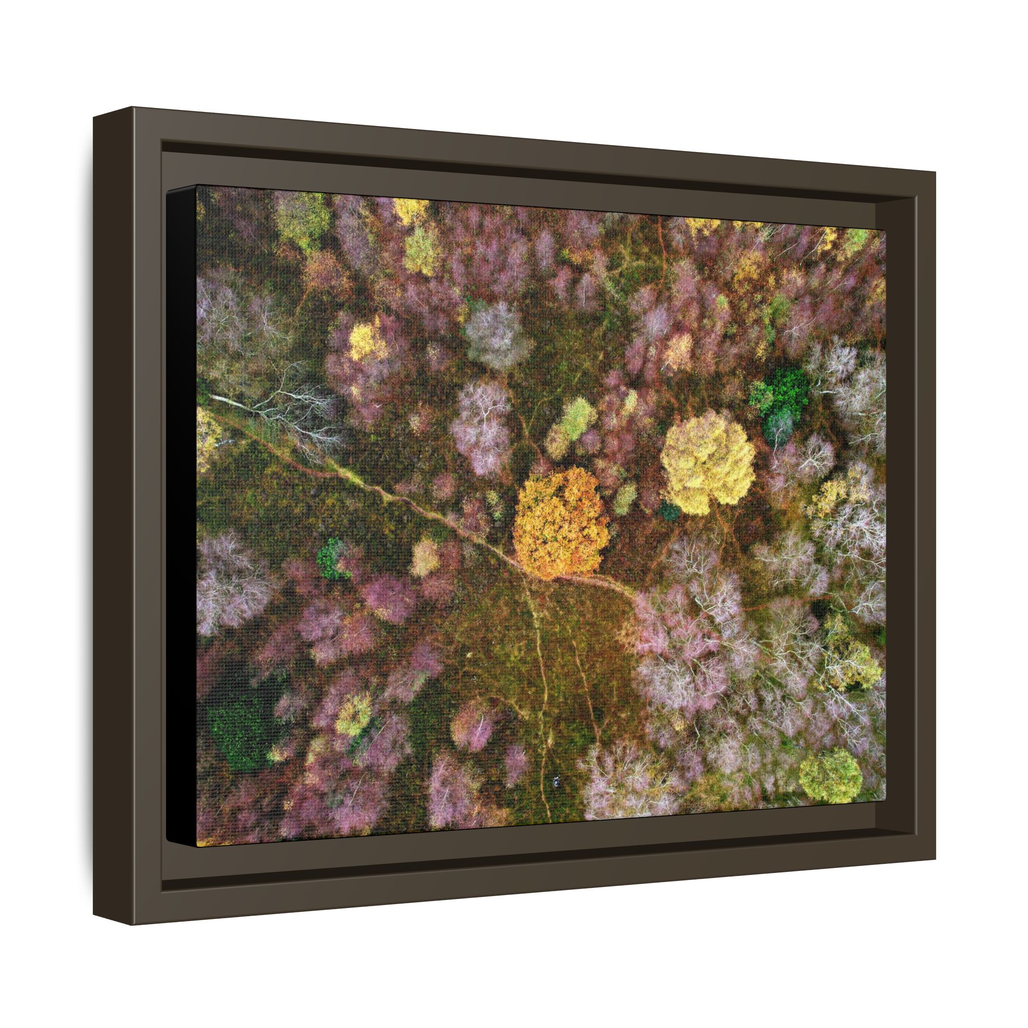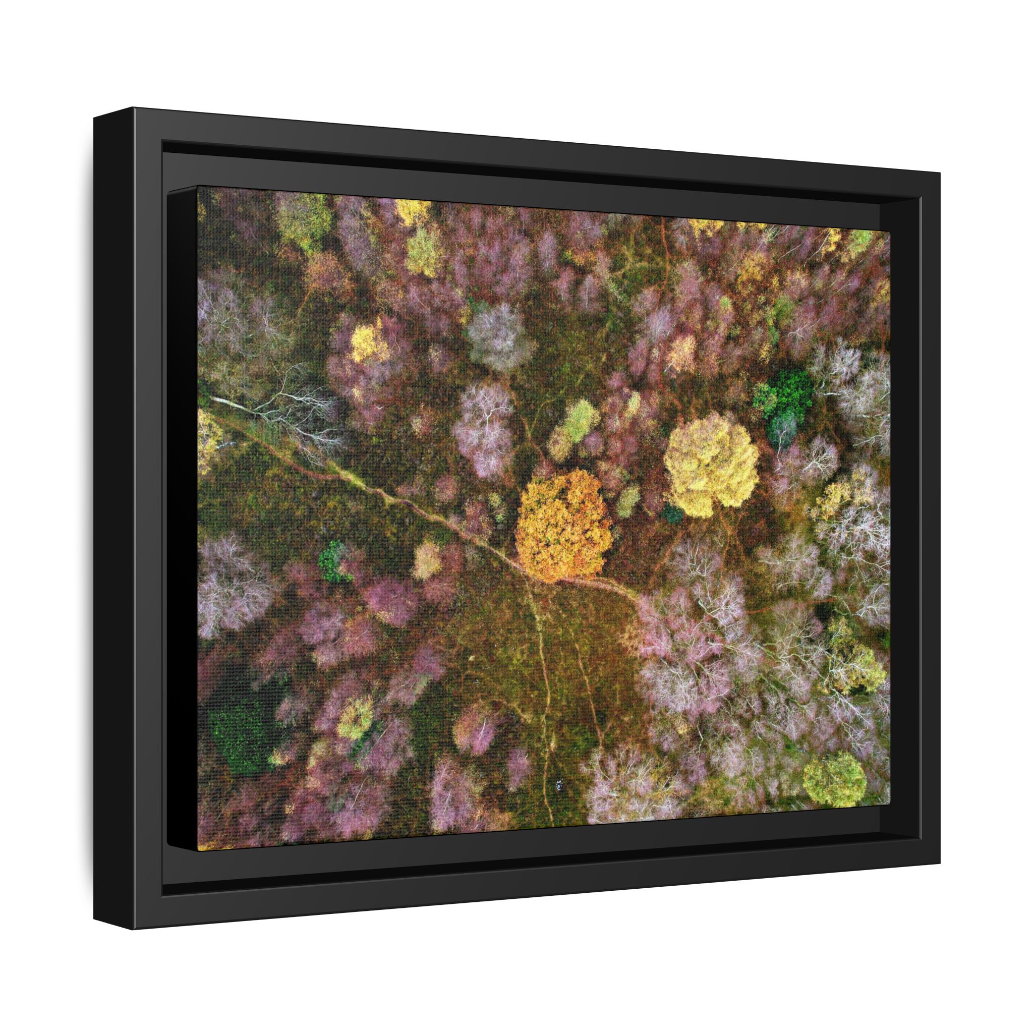 Printed on a top-quality cotton-polyester canvas blend, this piece features a proprietary eco-friendly coating that preserves every stunning color and detail, ensuring your autumnal landscape remains as vibrant as the day it was captured. UL-certified Greenguard Gold inks provide a richness that brings the textures and hues of the forest alive, making it a statement piece that will warm any space.