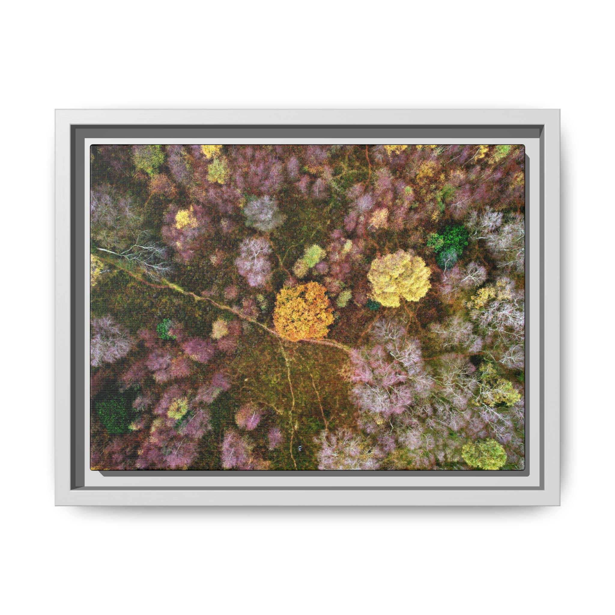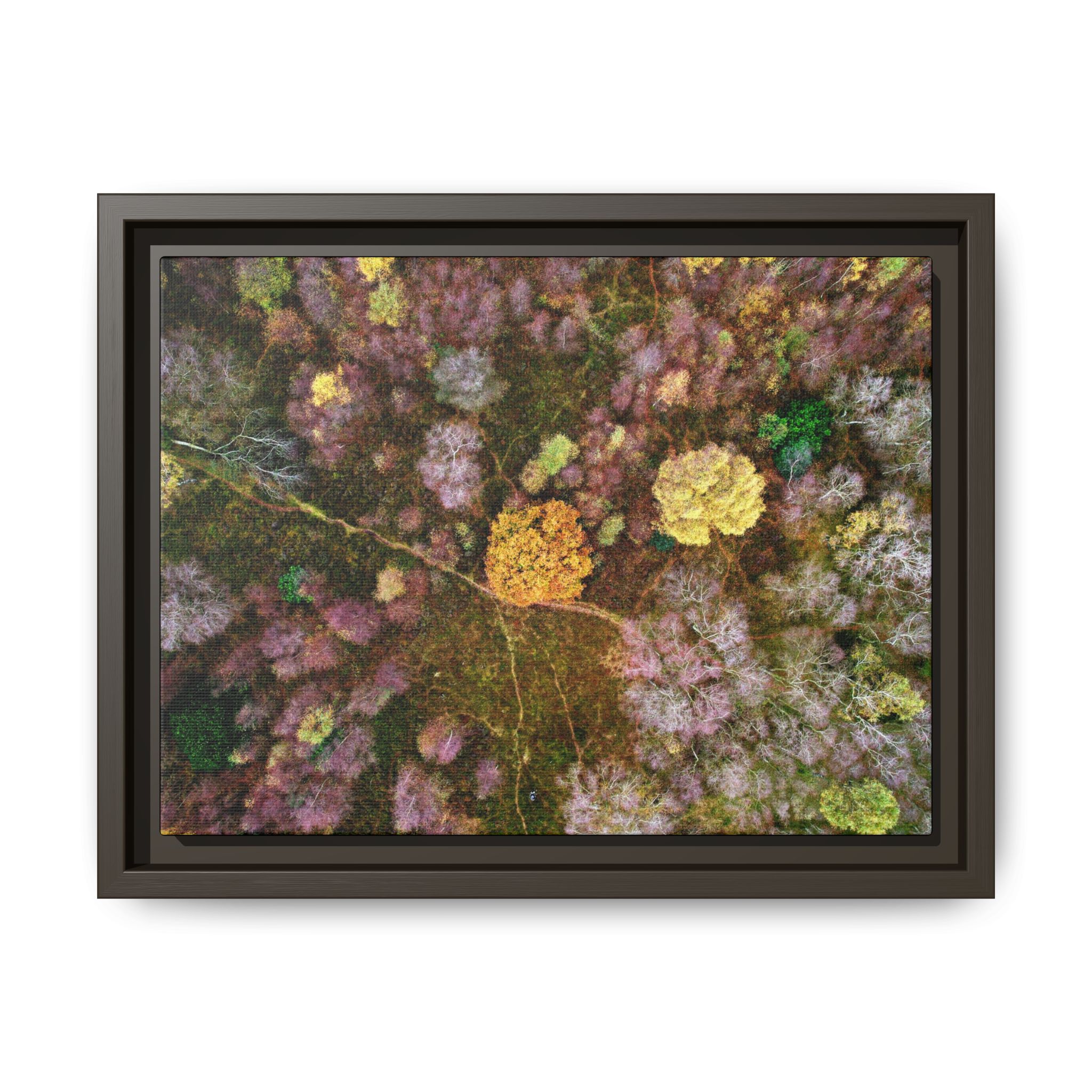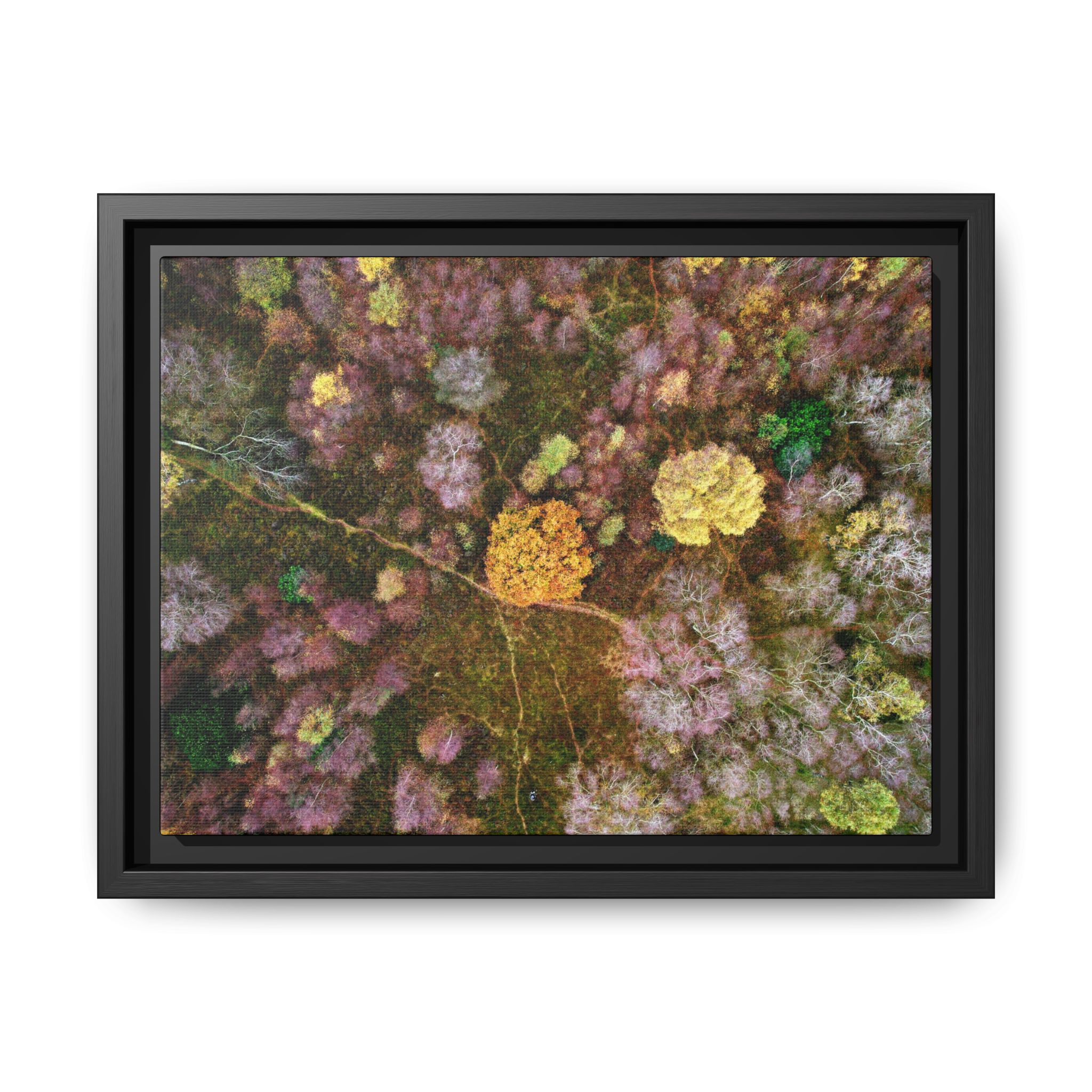 Printed on a top-quality cotton-polyester canvas blend, this piece features a proprietary eco-friendly coating that preserves every stunning color and detail, ensuring your autumnal landscape remains as vibrant as the day it was captured. UL-certified Greenguard Gold inks provide a richness that brings the textures and hues of the forest alive, making it a statement piece that will warm any space.